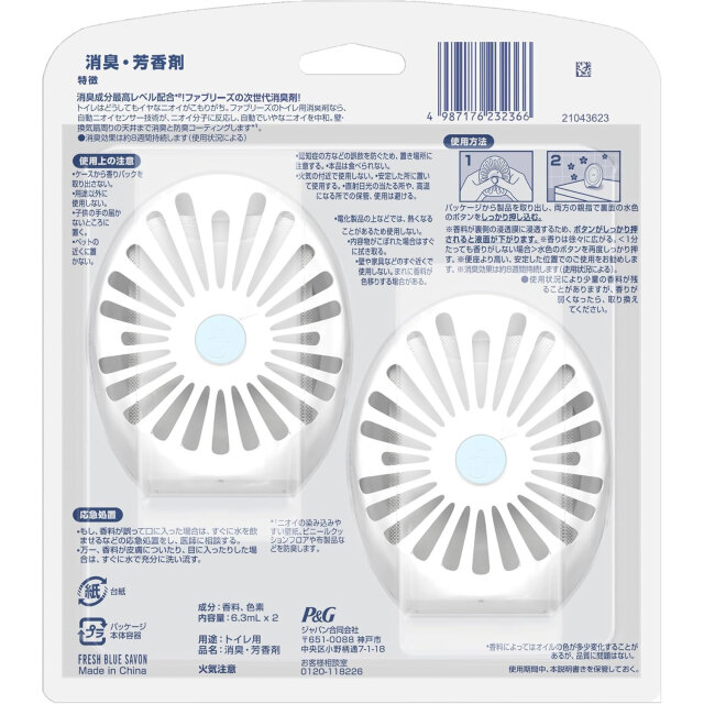 ファブリーズ 消臭芳香剤 トイレ用 消臭成分最高レベル フレッシュ・ブルー・シャボン 6.3mLx2個