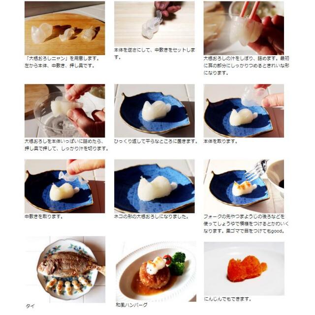 ◎大根おろしを簡単に立体的なネコの形にする型。