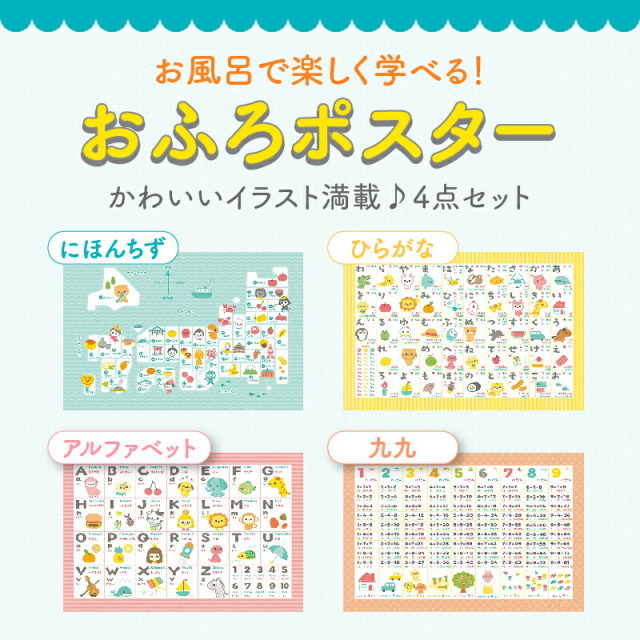 きらく屋本店トップ特集ページ キッズ お風呂で楽しく学べる! 水をつけてぺたっと貼れる! にほんちず・ひらがな・アルファベット・九九4点セット サイズ 約幅50cm×高さ33cm おふろポスター 4点セット 入浴剤 お風呂ポスター 日本地図 こども 九九 ひらがな カタカナ アルファベット 英語 知育 価格: ¥880 (税抜 ¥800) [ポイント還元 9ポイント~] 販売期間: 数量: 個 在庫: 売り切れました 在庫 売り切れました 返品・不良品についての詳細