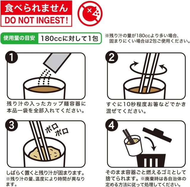 ●カップ麺の残ったスープを固めて捨てる凝固剤。