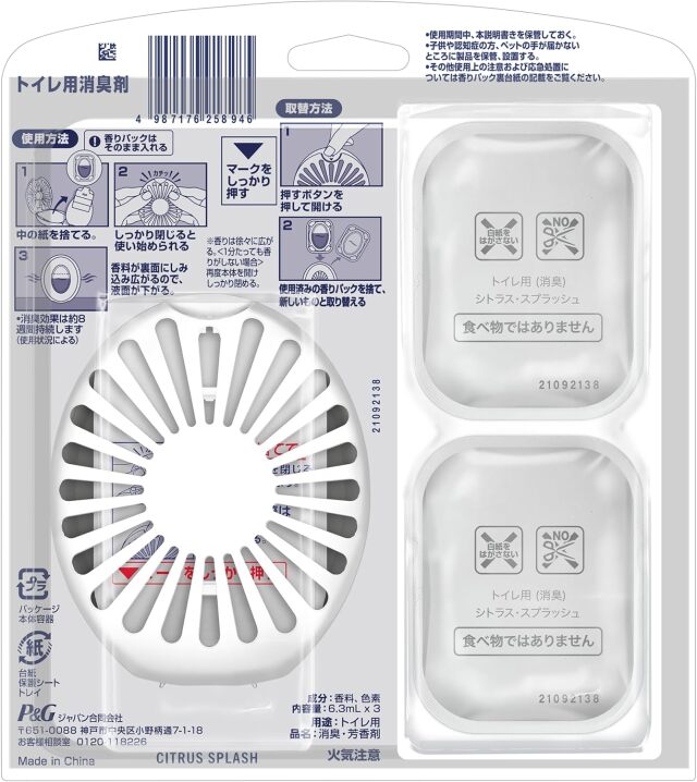 ファブリーズ 消臭芳香剤 トイレ用 シトラス・スプラッシュ 詰め替え入り本体ケース 6.3mL+詰め替え 6.3mL×2個